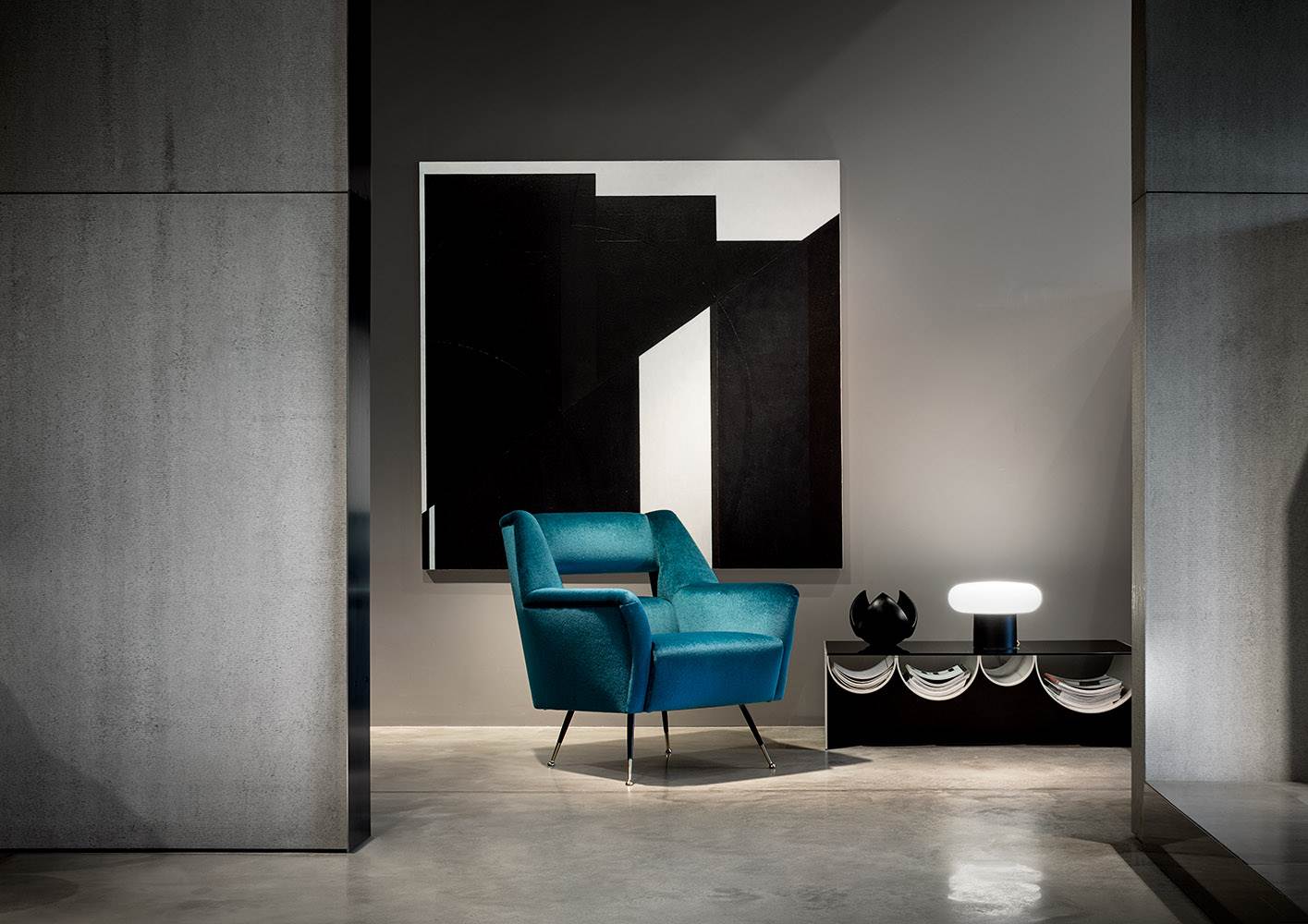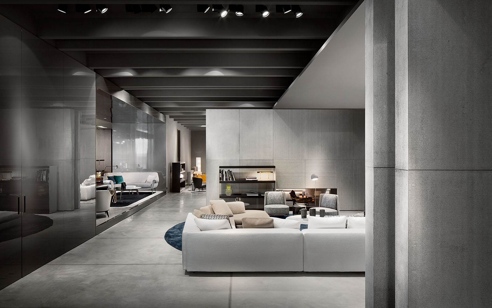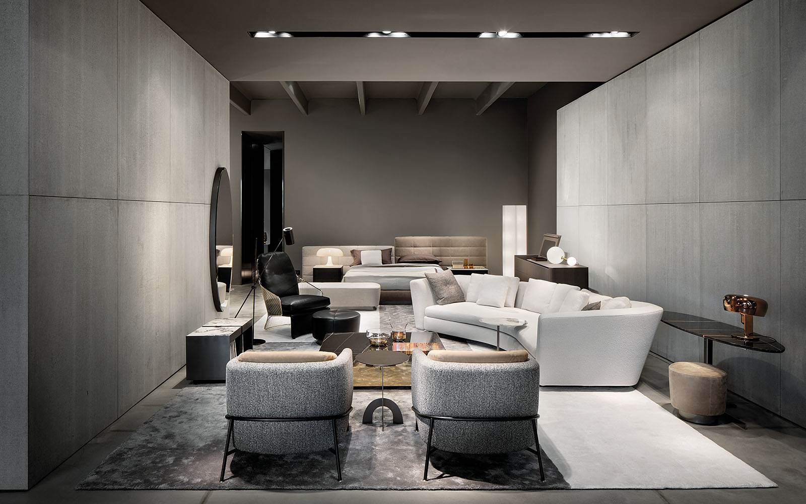 家具展品在高冷的灰色展厅内,将自身的价值拔到最高。