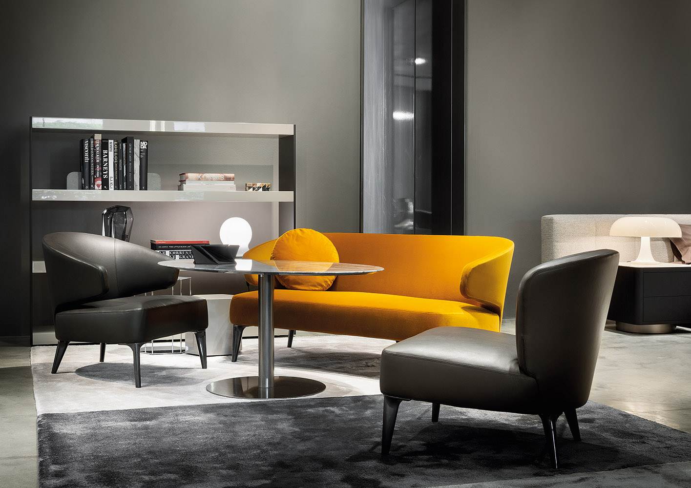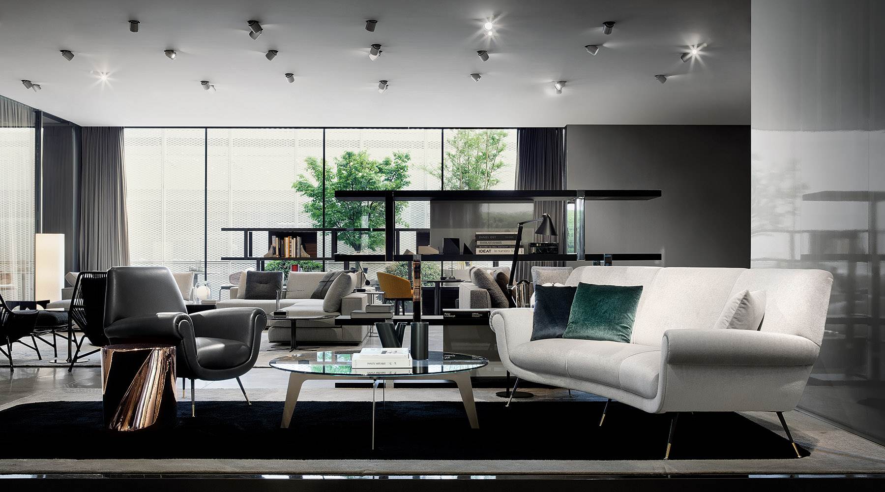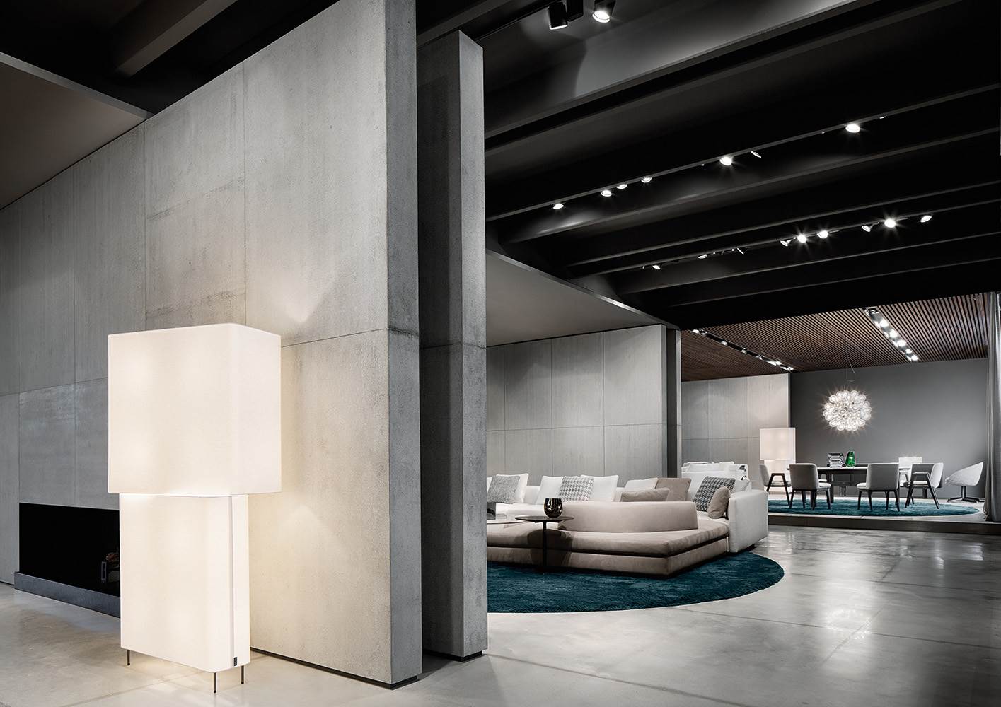家具展品在高冷的灰色展厅内,将自身的价值拔到最高。